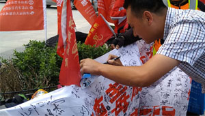群众在横幅上签字